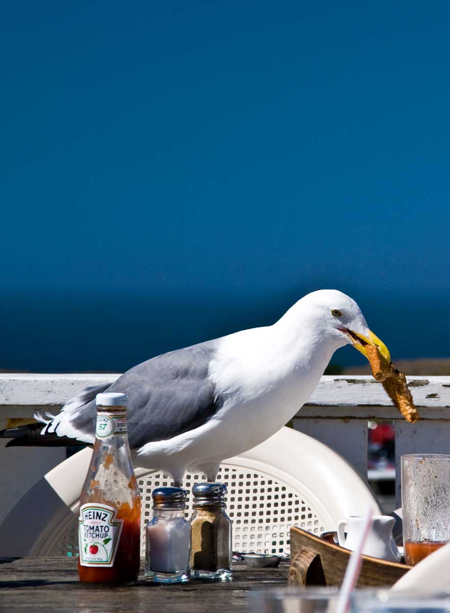 Es folgt ein gemütliches Frühstück auf dem Balkon im netten Bay View Café in Mendocino - Cappuccino, blauer Himmel, Sonne, Meer...