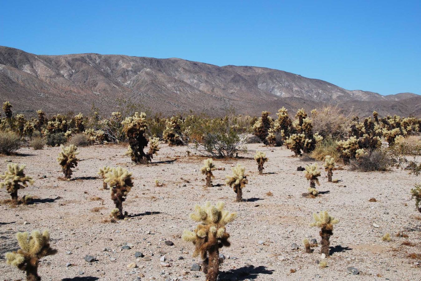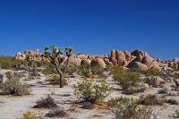 Es ist ziemlich heiß und wir durchfahren den Park von Süden nach Norden. Der südliche Teil des Parks gehört zur Colorado Wüste, die eher mit Kakteen übersät ist. Über einen Anstieg gelangt man in die höher gelegene Mojave Wüste, in der man an unzähligen Joshua Trees vorbeikommt. Wir passieren den Cholla Cactus Garden, die Jumbo Rocks, fahren durchs Hidden Valley und verlassen den Park bei der West Entrance Station.