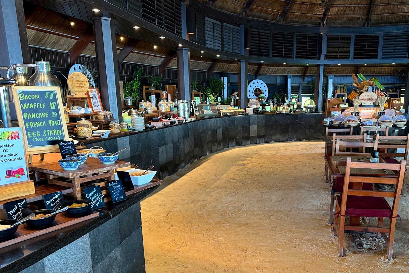 Die vier Hauptrestaurants locken zum Frühstück, Mittagessen und Abendessen mit vielfältigen Büffets. Live-Kochstationen und eine große Auswahl an internationalen und lokalen Gerichten sorgen für eine außergewöhnliche All-you-can-eat-Erfahrung. Die vier Büffetrestaurants bieten entspanntes Barfuß-Speisen und servieren themenbezogene kulinarische Köstlichkeiten, die nicht nur den Appetit stillen, sondern auch demonstrieren, dass das Kuredu Resort & Spa zum Besten vom Besten im kulinarischen Sektor auf den Malediven gehört.