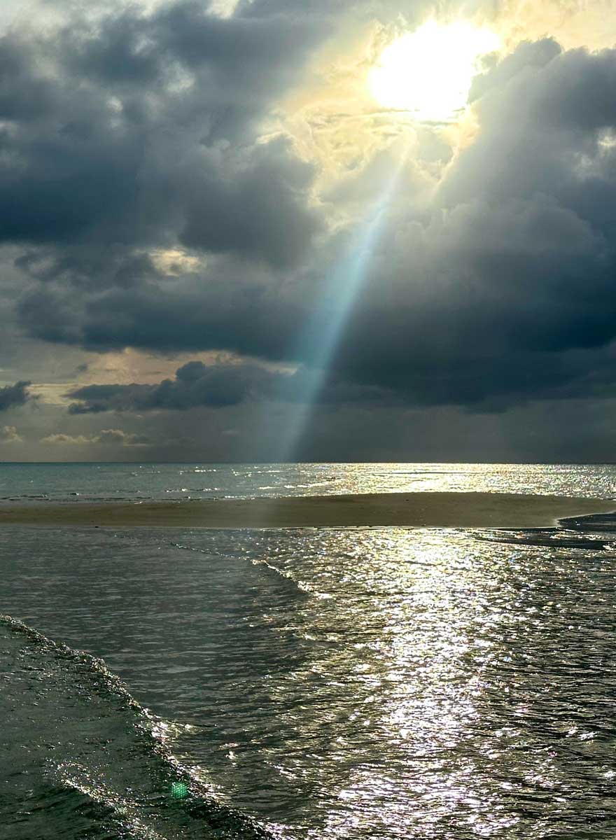 Und am Abend ist die Sandbank natürlich ein beliebtes Fotomotiv für einen tollen Sonnenuntergang im Meer...