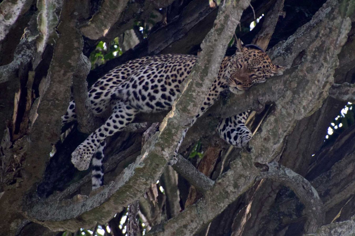 Am Weg zurück zur Lodge fahren wir nochmal durch den Park und sehen 2 Leoparden (den vom Vormittag und einen zweiten)...