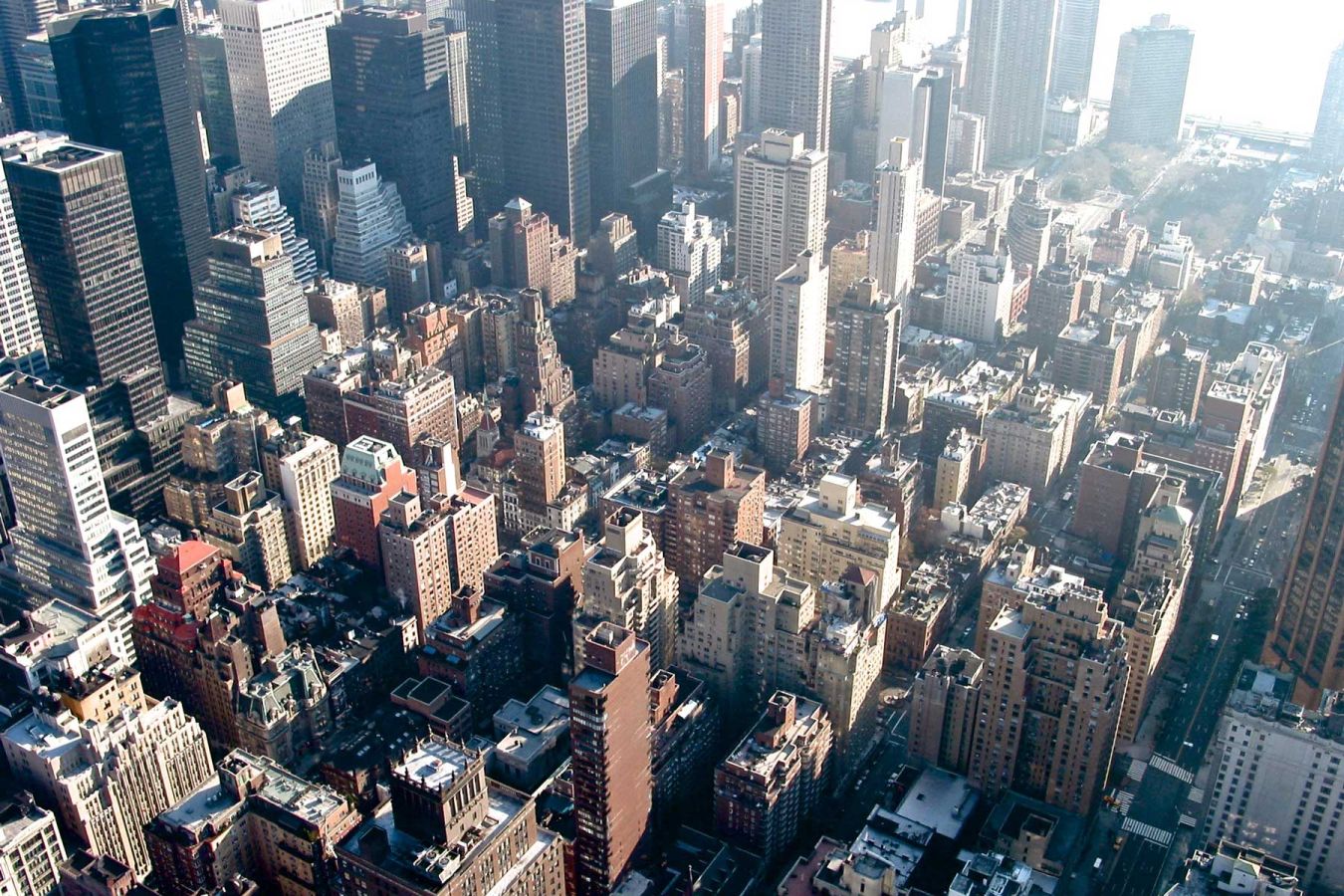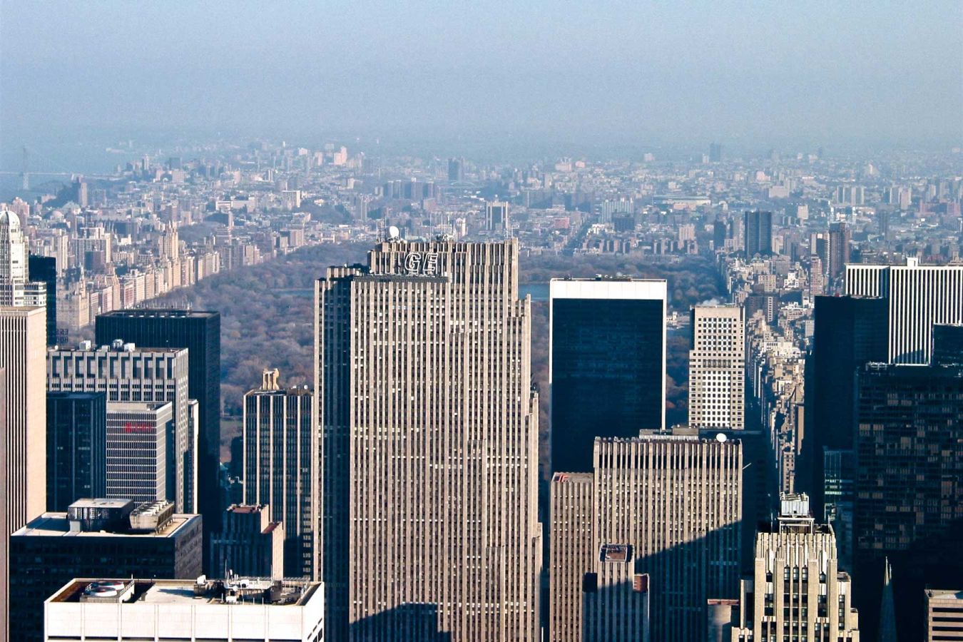 Von der Aussichtsplattform im 86. Stock haben wir eine herrliche Rundumsicht über New York City. Es ist wolkenlos, aber ein wenig dunstig.