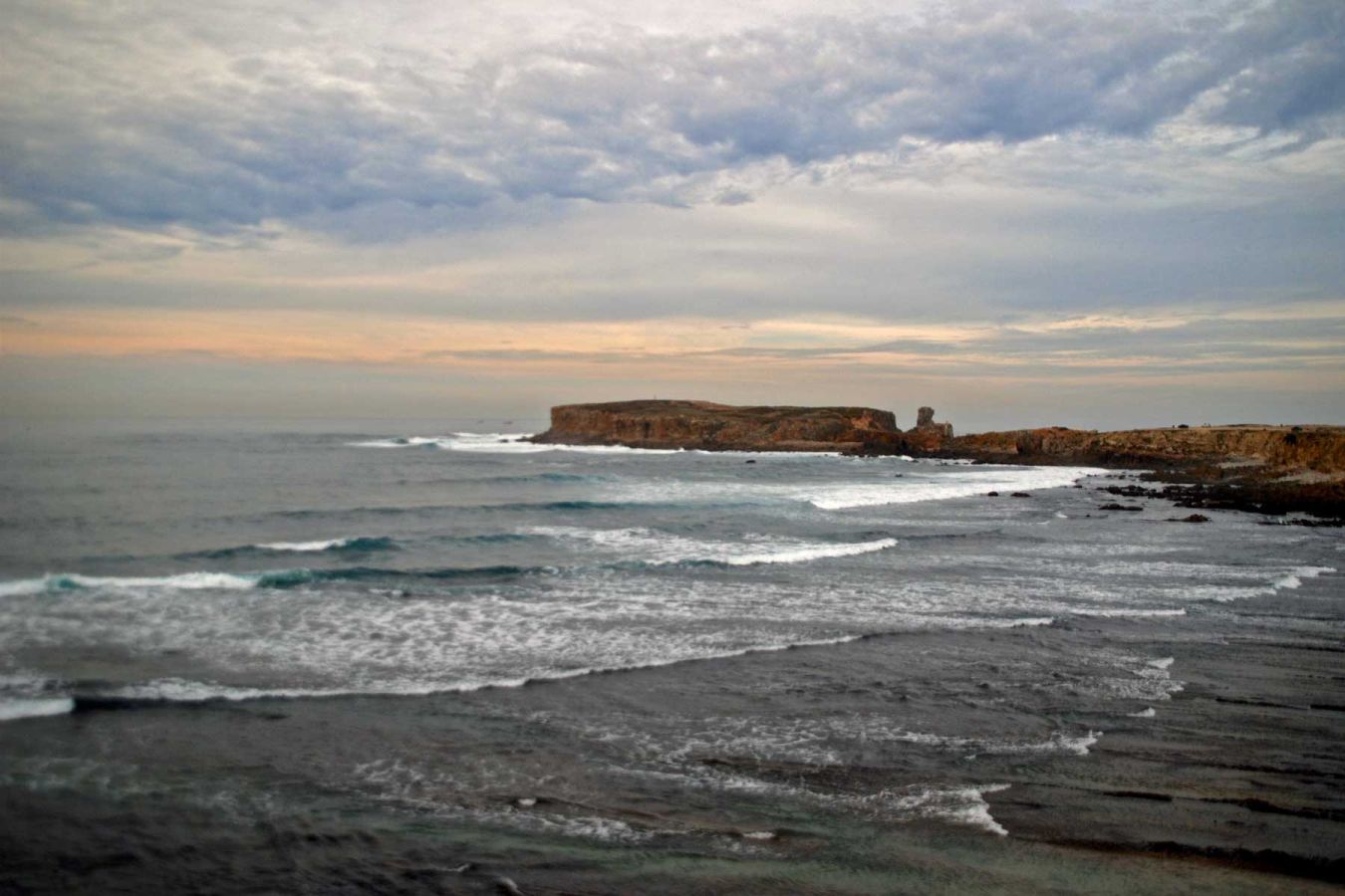 Nach der Golfrunde fahren wir nach Peniche, ca. 20 km entfernt. Wir machen eine Rundfahrt um die Halbinsel, vorbei an einer Sardinenfabrik, an bizarren Klippen und hinaus bis zum Leuchtturm und zum Restaurant Nau dos Corvos am Cabo Carvoeiro, am Ende der Halbinsel. Sonntag und Montag sind in Portugal aber sehr viele Lokale zu.