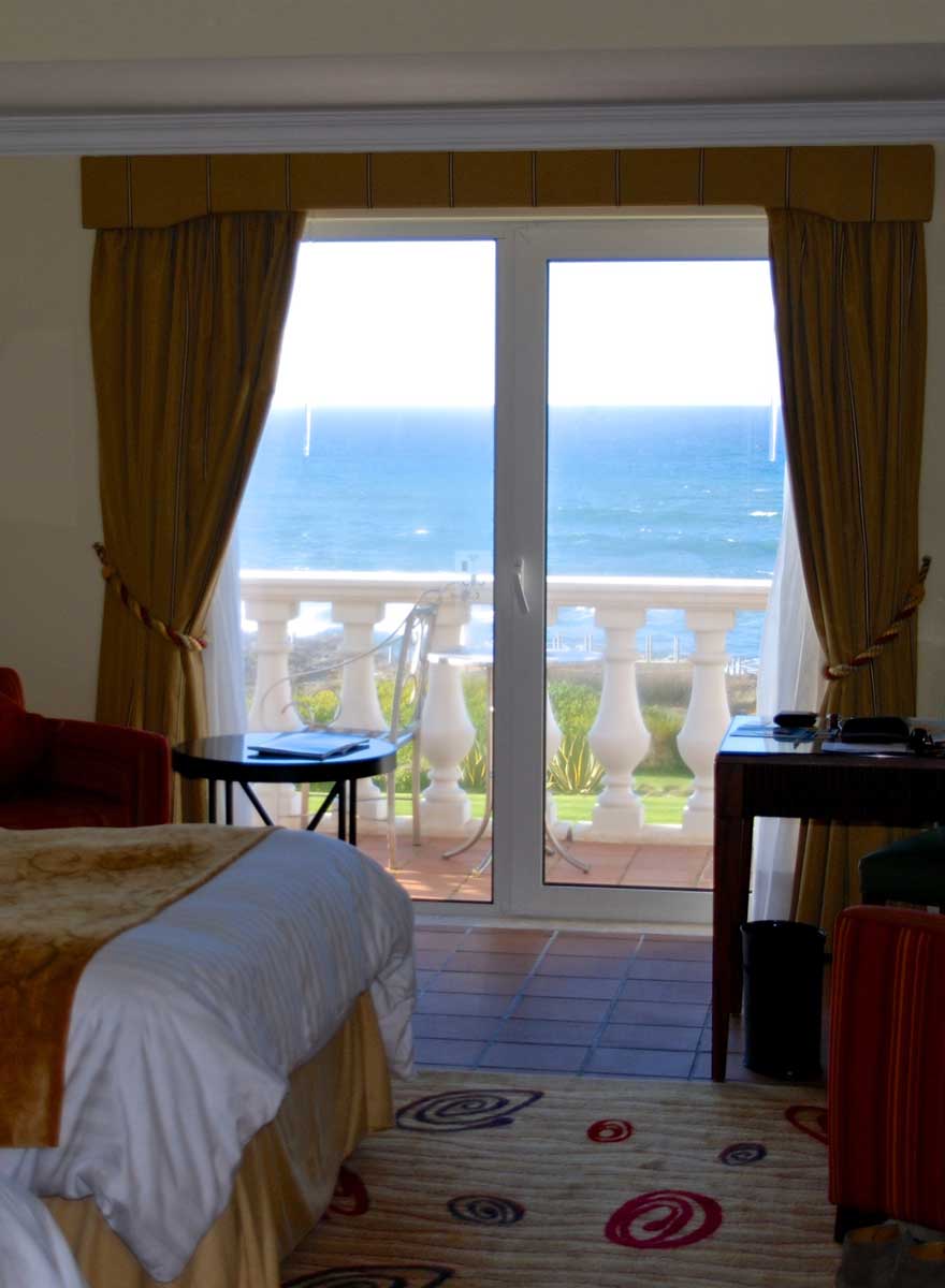 Im Restaurant gibt es ein Dinner-Buffet mit allerlei Köstlichkeiten und eine Flasche vinho tinto (Cerejeiras)…Im Zimmer genießen wir das gewaltige Rauschen des Meeres….