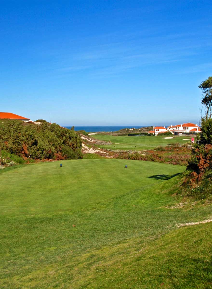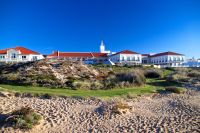 Wetter:Praia d'El Rey: wolkenlos, windig, 18°C