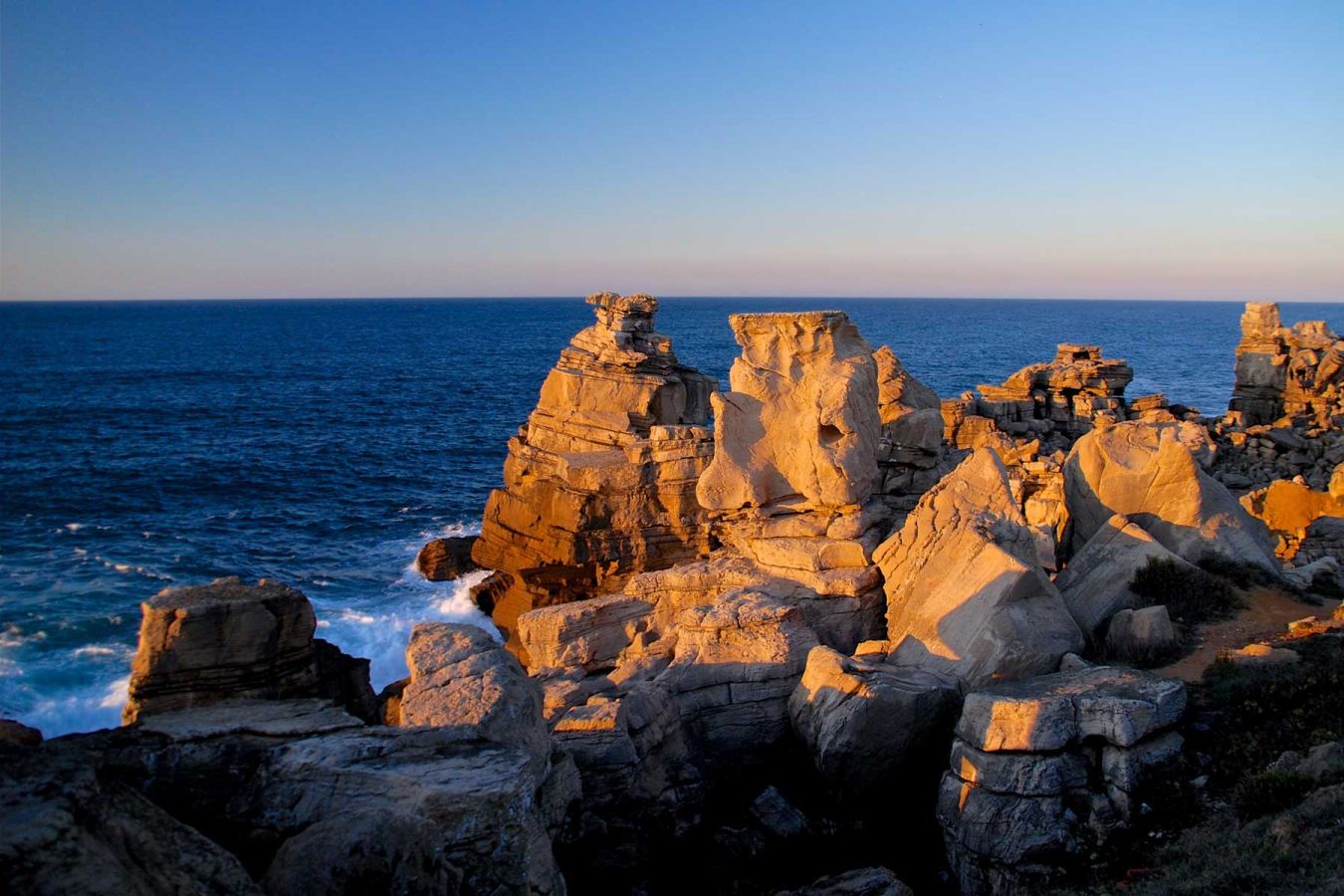 Wir ziehen uns um und fahren mit dem Auto zum Sonnenuntergang beim Cabo Carvoeira bei Peniche.