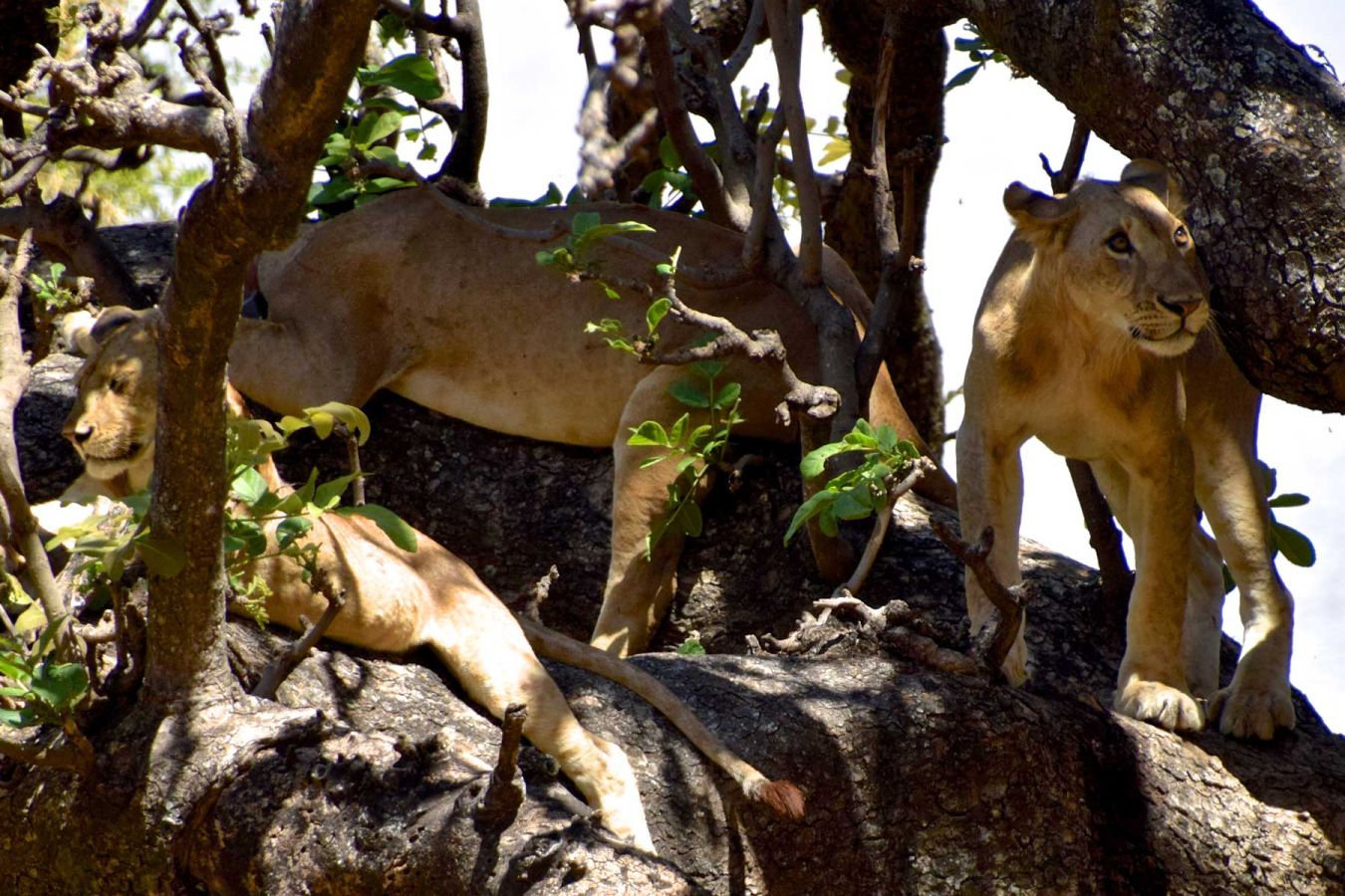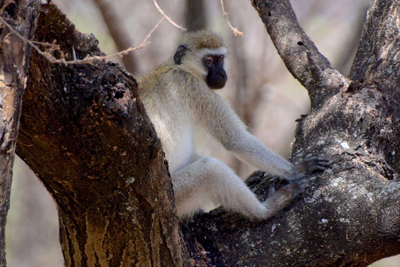 Wir sehen Mitis Monkeys, Paviane, Hornbills, Kingfisher, Impalas, Zebras, Giraffen, Elefanten (ganz nah) und zur Krönung die seltenen Baumlöwen...