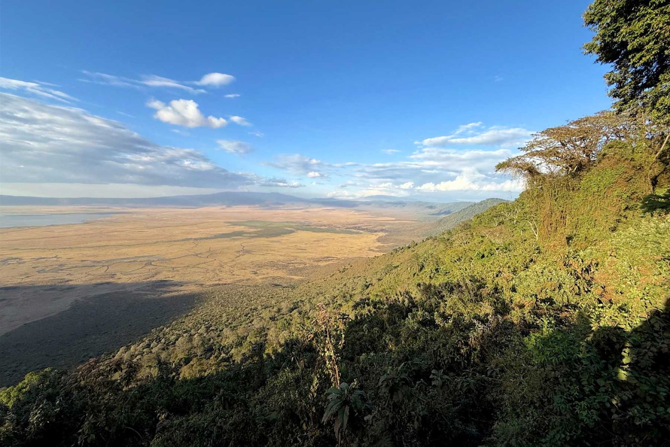Ab dem Park-Eingang gibt’s nur mehr Schotterstraßen, die sehr steil bergauf führen. Nach ca. 7km kommen wir zum View-Point. Es bietet sich ein sensationeller Blick über den Ngorogoro Crater...