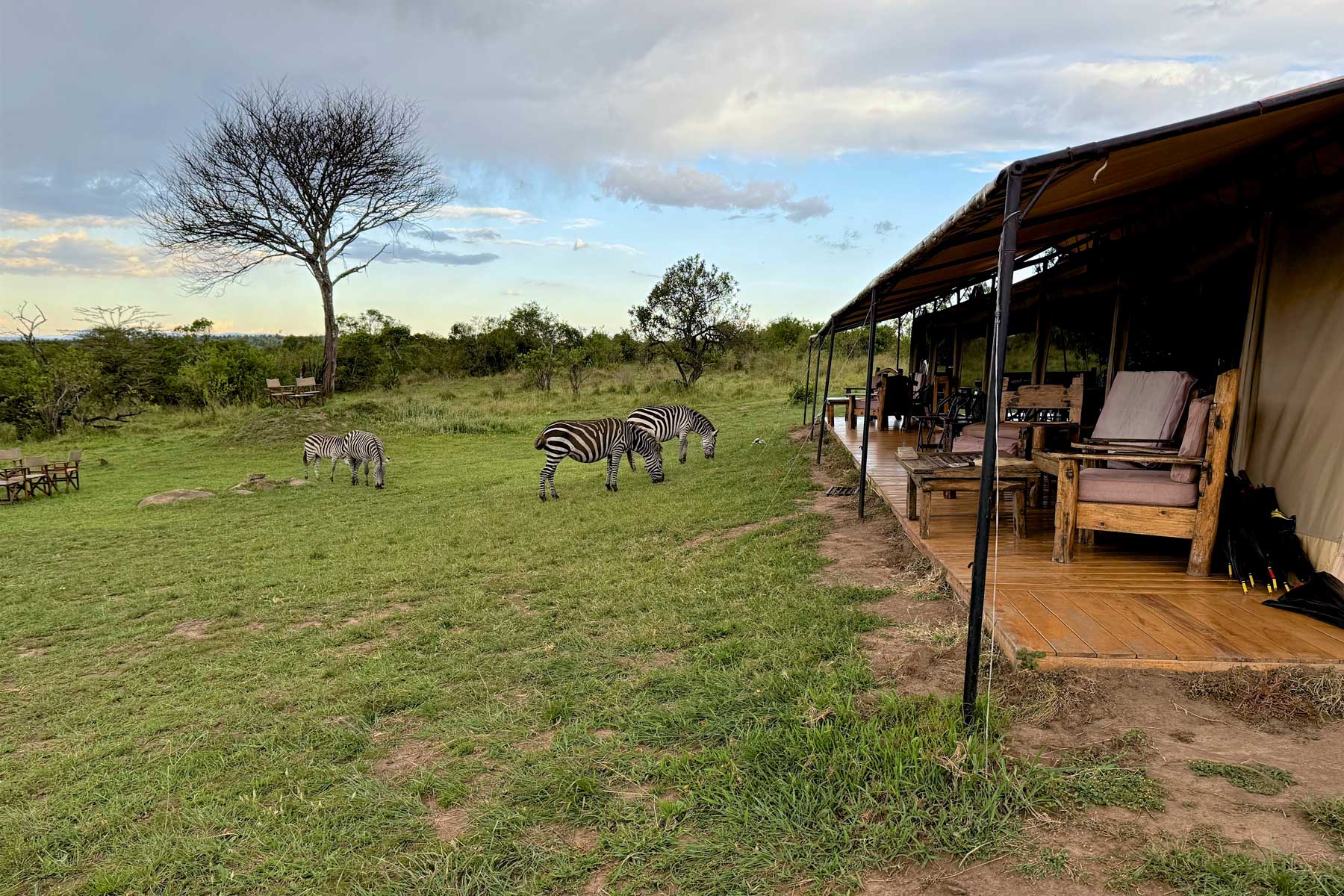 Während des Tagebuch-Schreibens grasen plötzlich 4 Zebras ohne Scheu direkt vor mir...