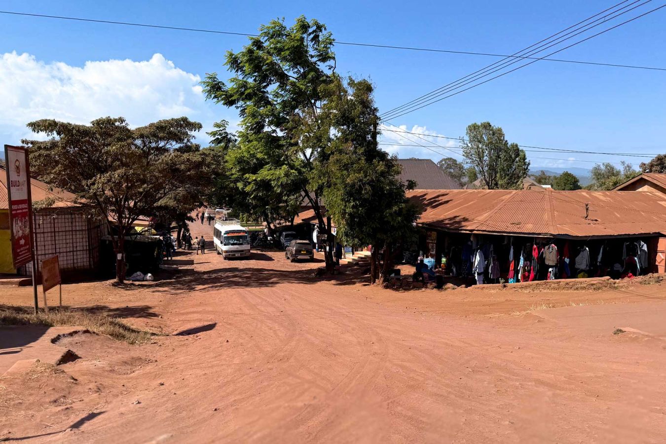 Kurz vor Arusha in Makuyuni müssen alle Jeeps ca. eine 3/4h warten, da der Vizepräsident mit seinem Konvoi vorbei fährt.....