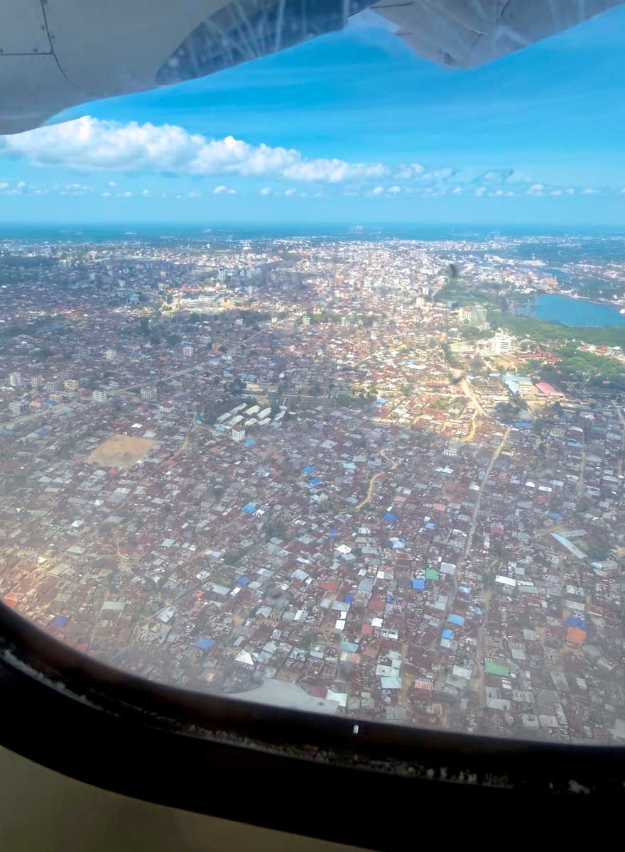 Beim Landeanflug überfliegen wir das riesige Häusermeer von Sansibar Stadt…