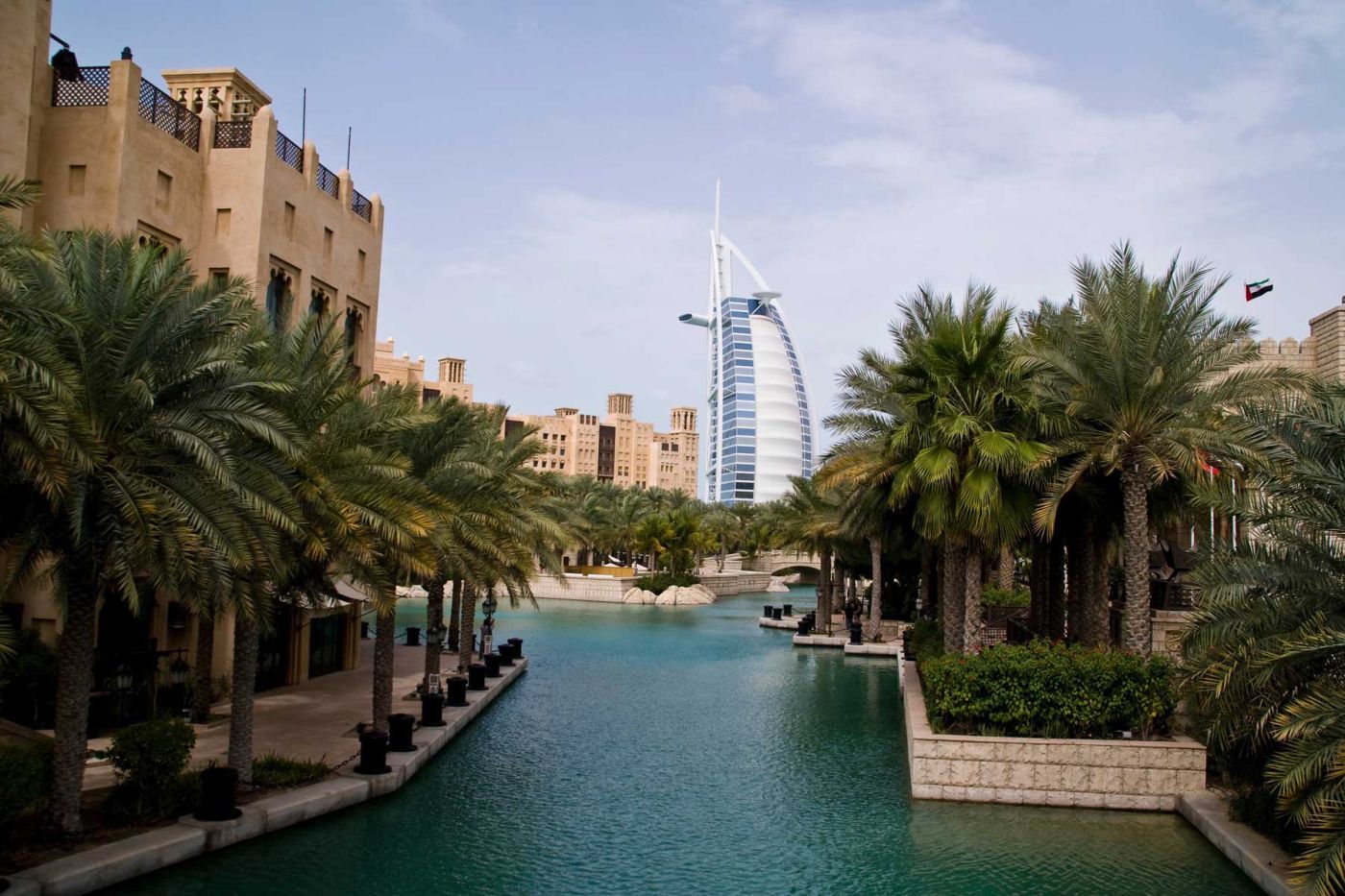 Mit dem Auto geht’s über die Jumeirah Road dem Strand entlang bis zum Burj al Arab, den man ohne Reservierung allerdings nicht betreten darf. Gleich in der Nähe liegt das Madinat Jumeirah mit zwei Luxushotels, Al Qasr und Dar Al Masyaf. Auf der Terrasse des Al Fayrooz nehmen wir einen Drink, mit Blick auf den beleuchteten Burj al Arab.