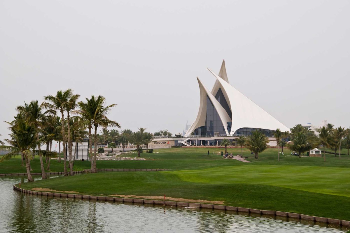 Ein gemütlicher Vormittag zum Erholen und Frühstück gegen 10.30 Uhr. Um 11.45 Uhr geht's zum Dubai Creek Golf & Yacht Club. Die riesigen Segel über dem Clubhaus sind das Wahrzeichen. Nach ein wenig Übung auf der Driving Range erfolgt um 13.00 Uhr der Kanonenstart. Am Wochenende wird immer um 08.00 Uhr und um 13.00 Uhr mit Kanonenstart gestartet. Es ist warm, aber dunstig und trüb und die Sonne kommt kaum durch.