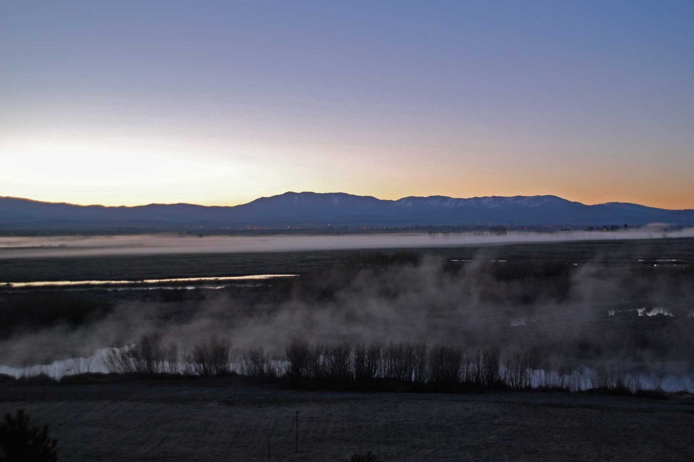 In der Früh bietet sich ein wunderschöner Ausblick aus dem Zimmer über das weite Tal. Der Nebel steigt auf, die Enten und Vögel zwitschern/quaken...