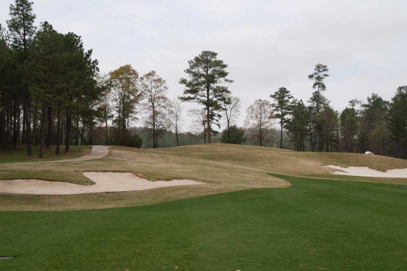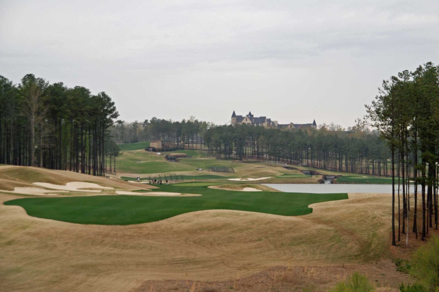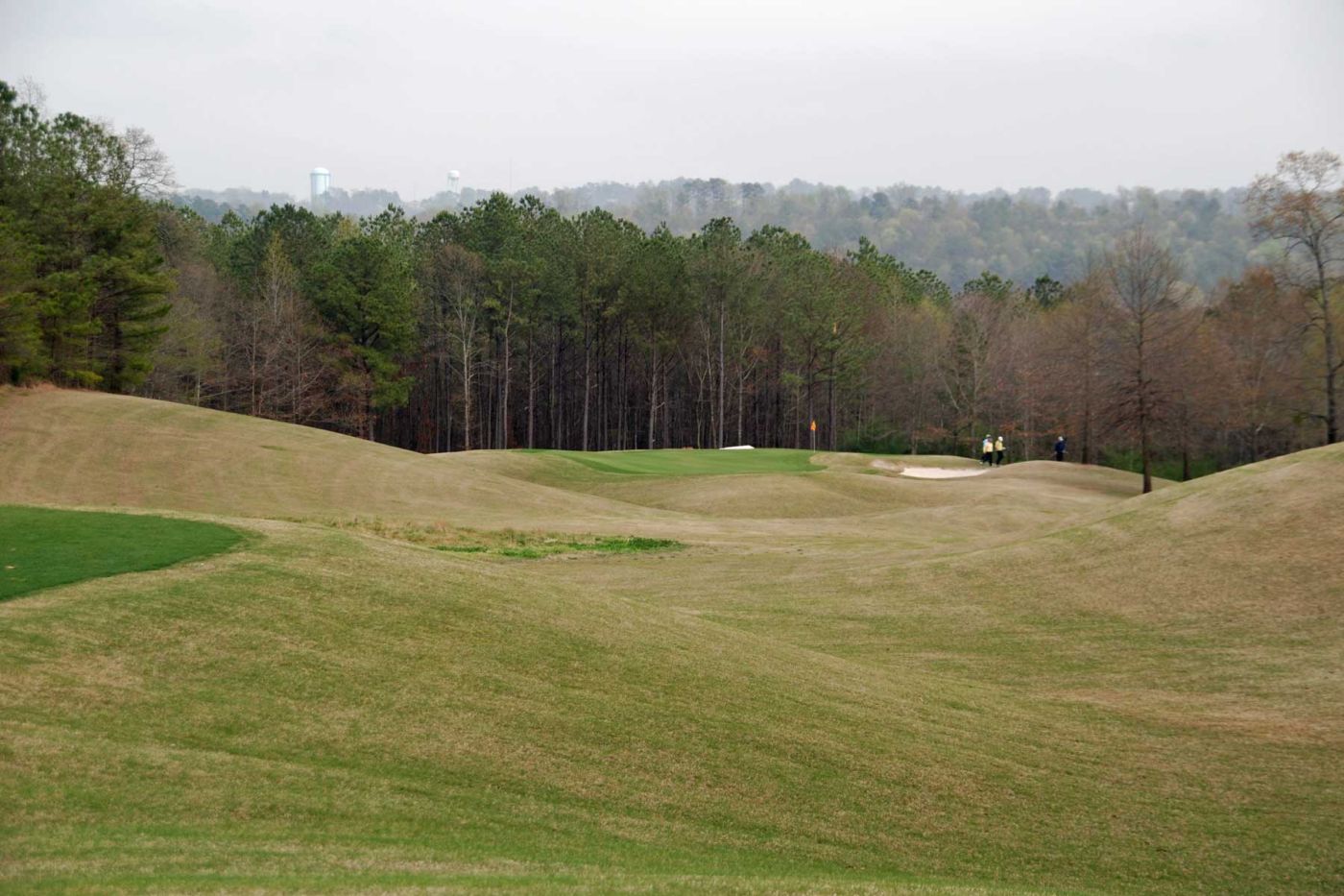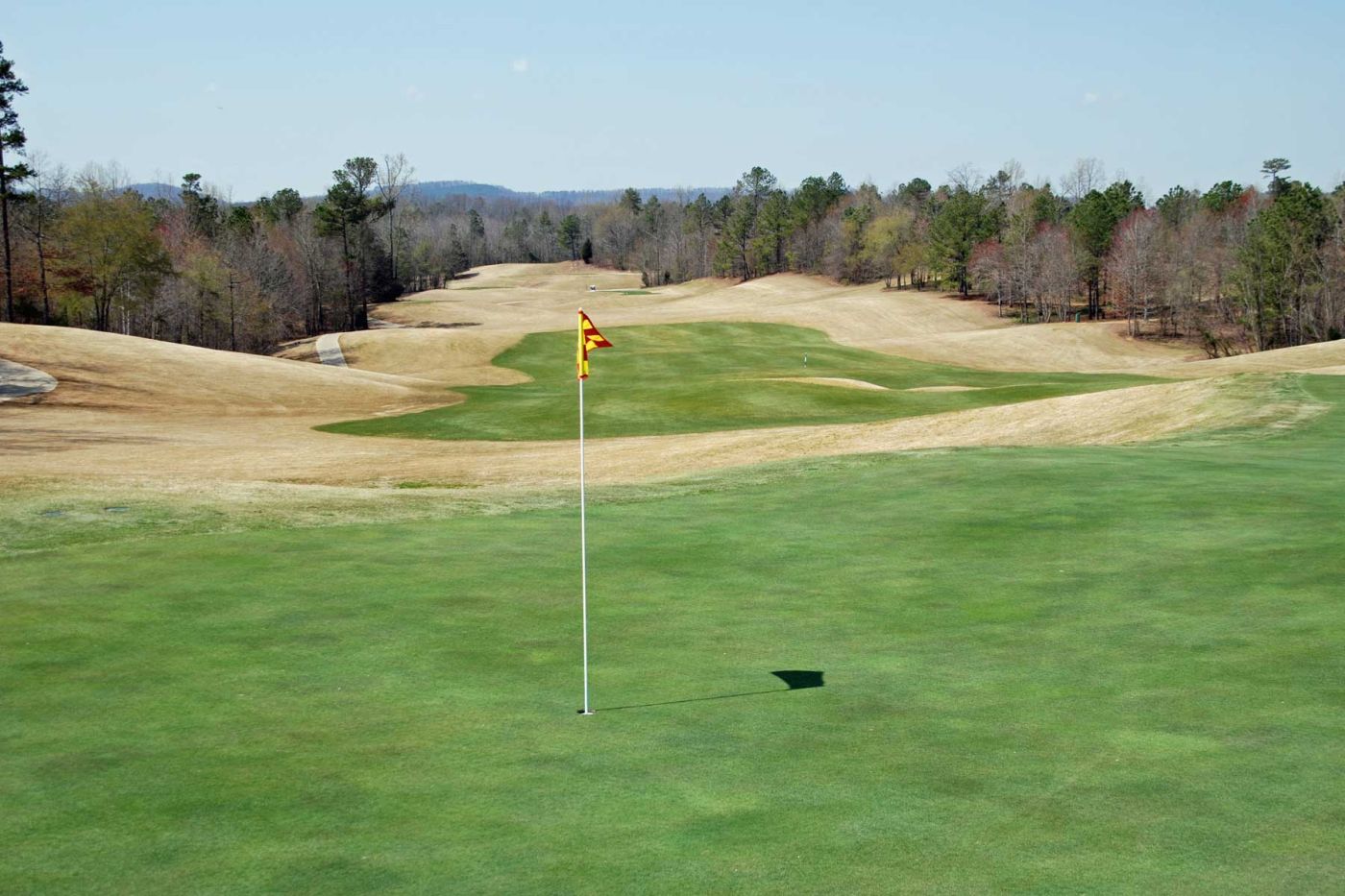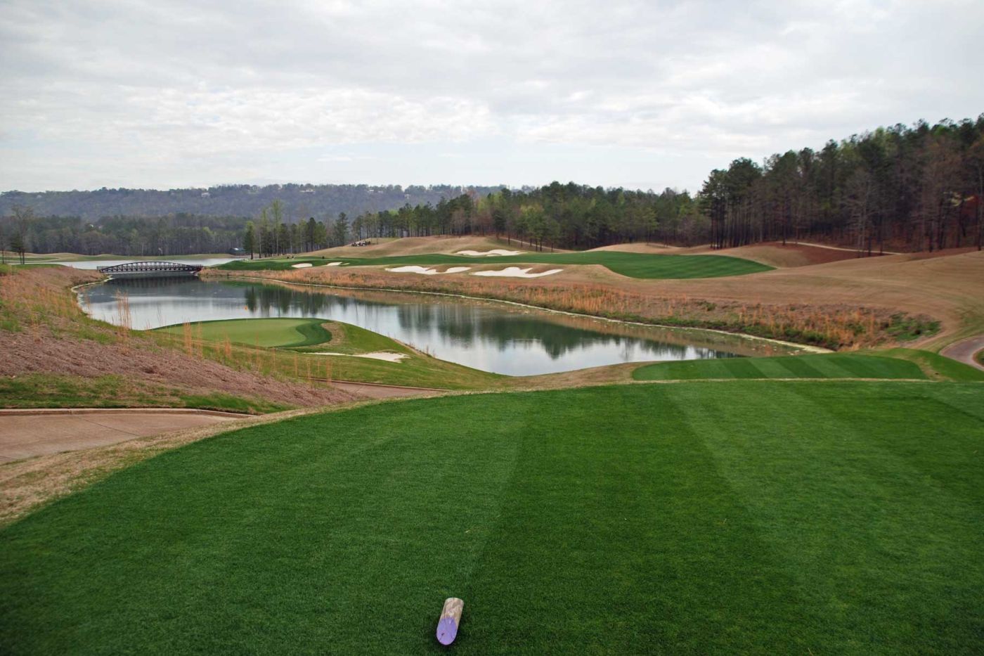Heute spielen wir auf dem RTJ Grand National. Bereits um 12.00 Uhr spielen wir den „Lake Course“. Der Kurs ist wunderschön angelegt, entlang eines riesigen Sees gelegen. Der Platz ist toll eingebettet in die Hügellandschaft.