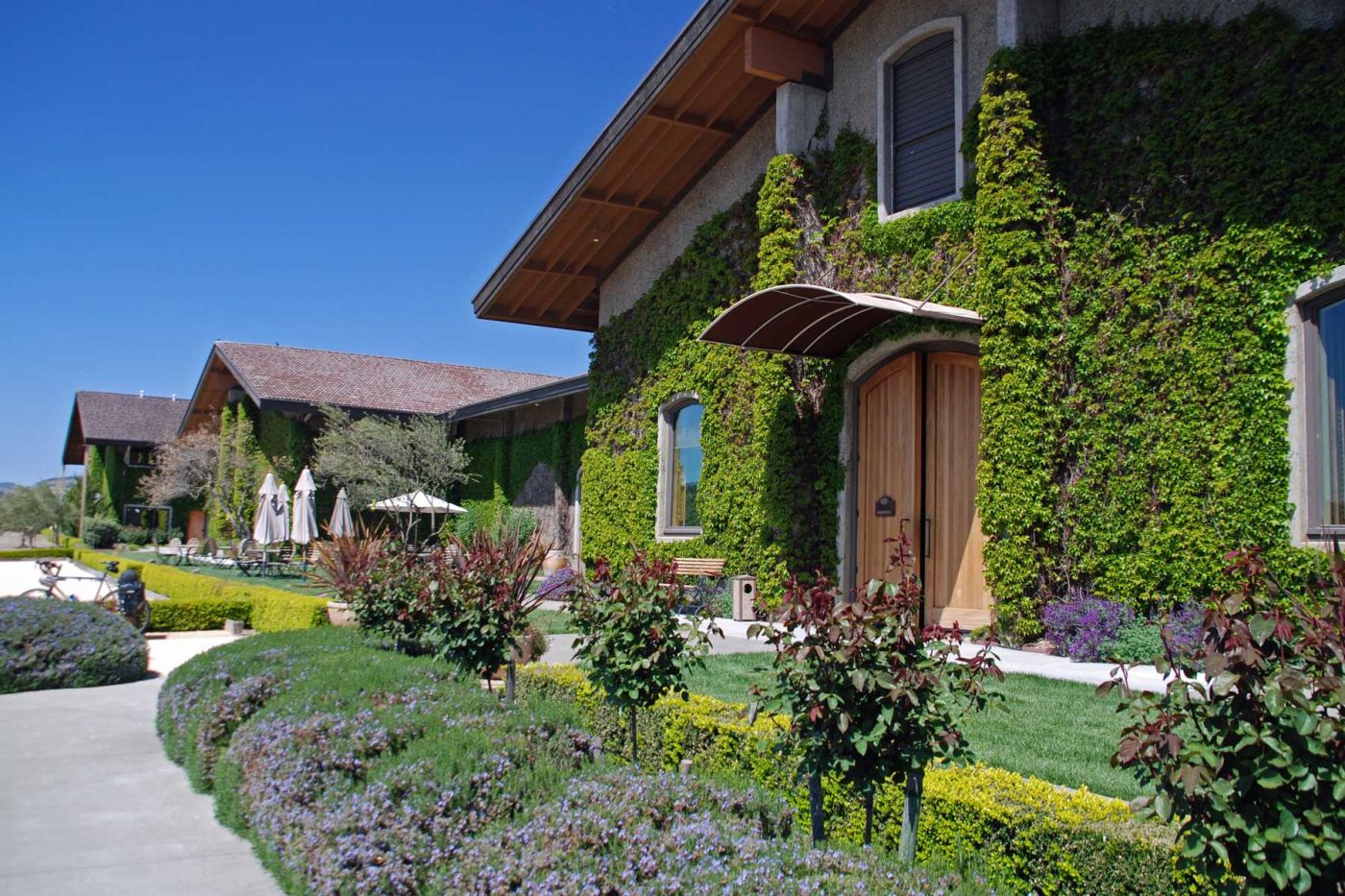 Es geht weiter nach Nappa und von Nappa den Old Silverado Trail im Tal entlang. Wir stoppen kurz bei Clos du Val und machen einen längeren Stopp und eine Verkostung bei Mumm Napa auf der Terrasse. Alles ist grün und duftend. Wäre ein schöner Ort zum Versumpfen...