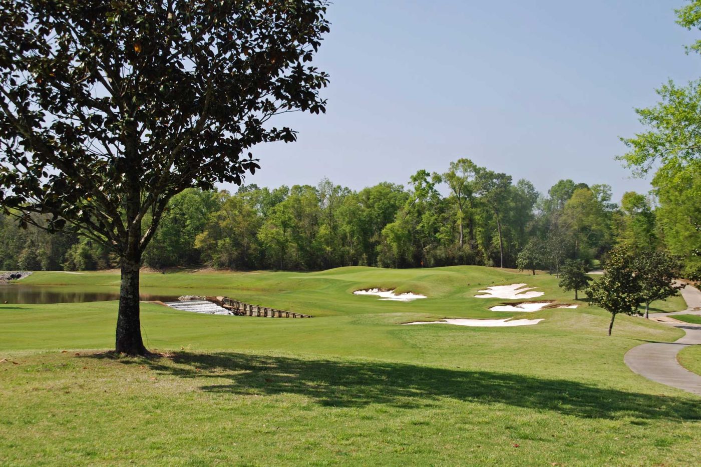 Anschließend fahren wir zum Magnolia Grove Golf Course. Wie spielen den Course „The Falls“, wo wir bei schönstem Wetter durch wunderschöne Wälder speilen. Tierwelt: Gänse und Schlangen!