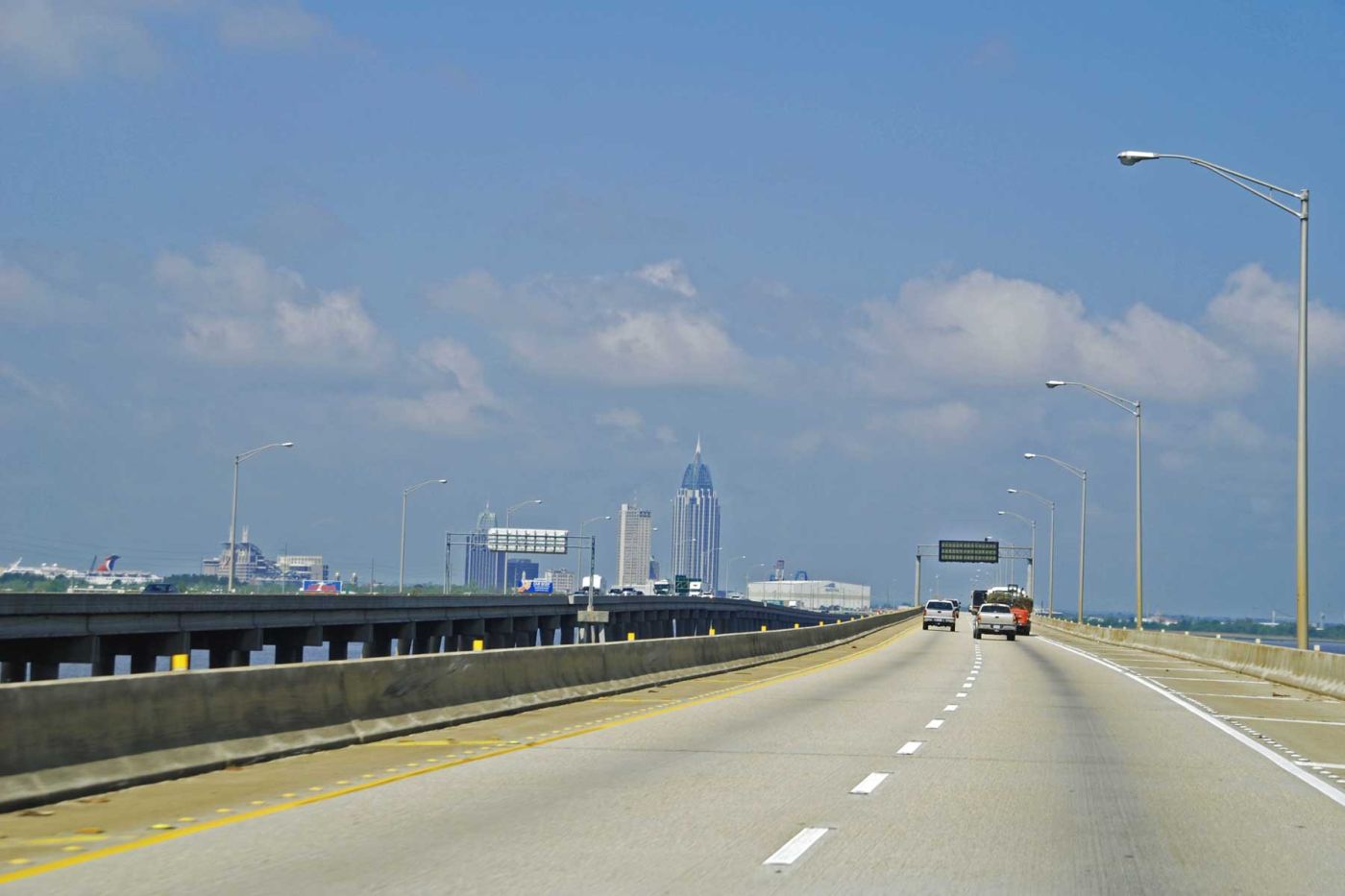 Danach fahren wir zurück nach Foley ins Tanger Outlet. Anschließend geht's auf dem Highway R59 und der I- 10 und auf dem Battleship Parkway über eine große Brücke nach Mobile.