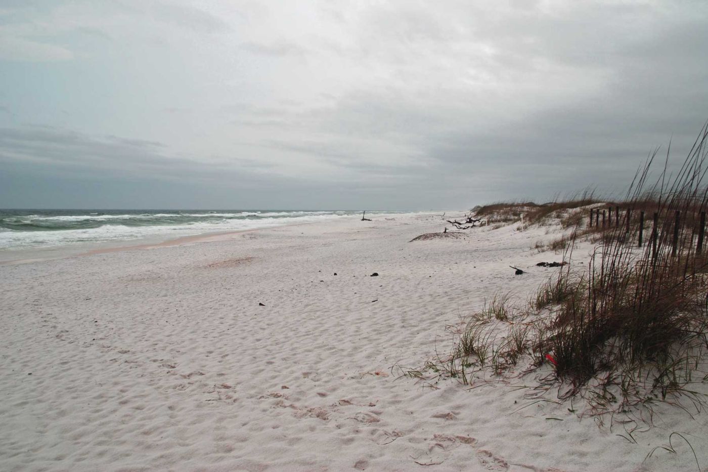 Wir haben es jedoch eilig, da wir noch eine längere Strecke vor uns haben. Schöne weiße Strände mit Dünen entlang der Küste, leider nicht die in Florida erhoffte Sonne…