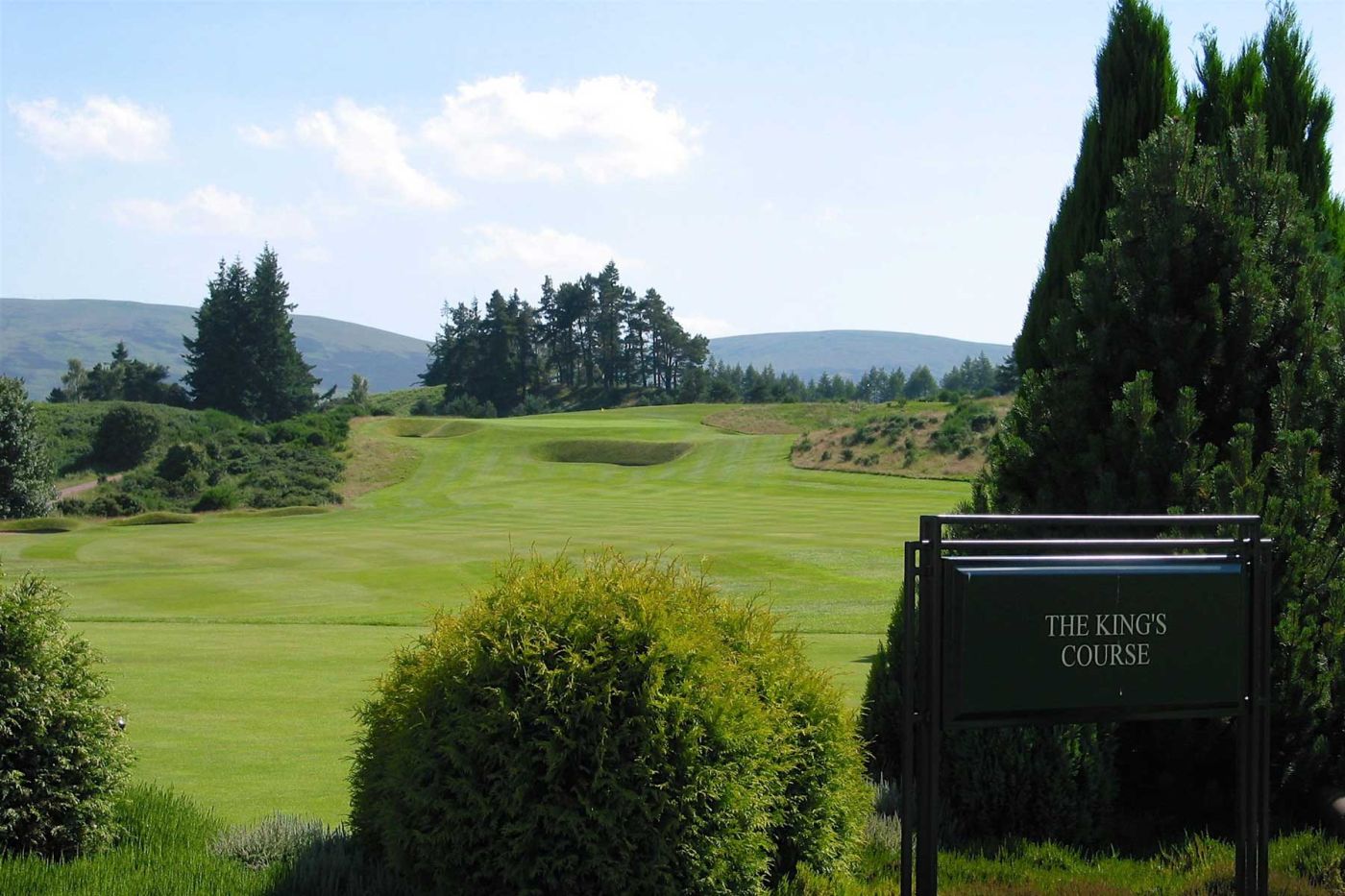 Um 16.00 Uhr spielen wir den King's Course in kurzer Hose und kurzem Polo. Ein toller hügeliger Platz mit herrlicher Aussicht auf die umliegenden Berge (Hügel)...