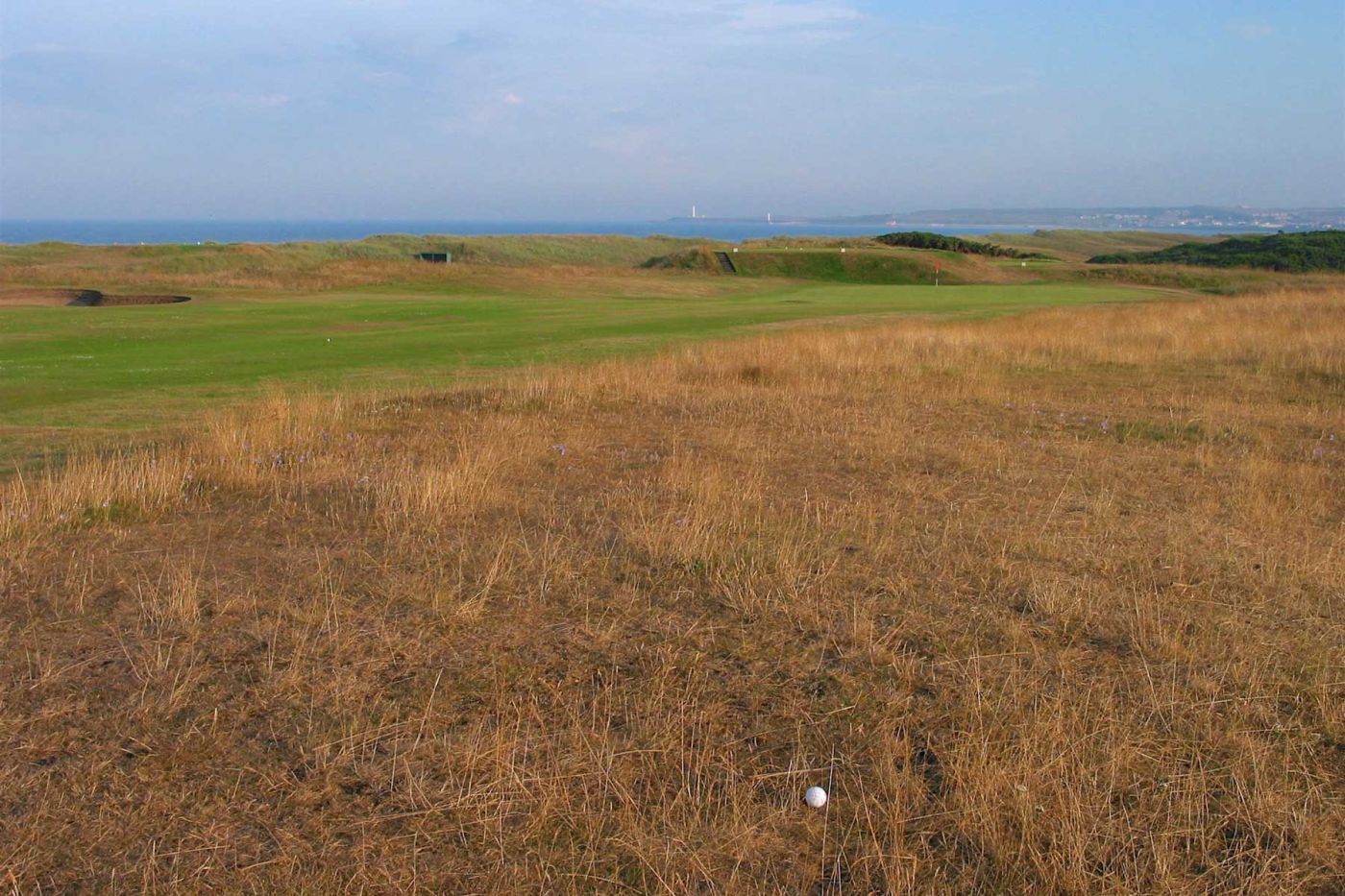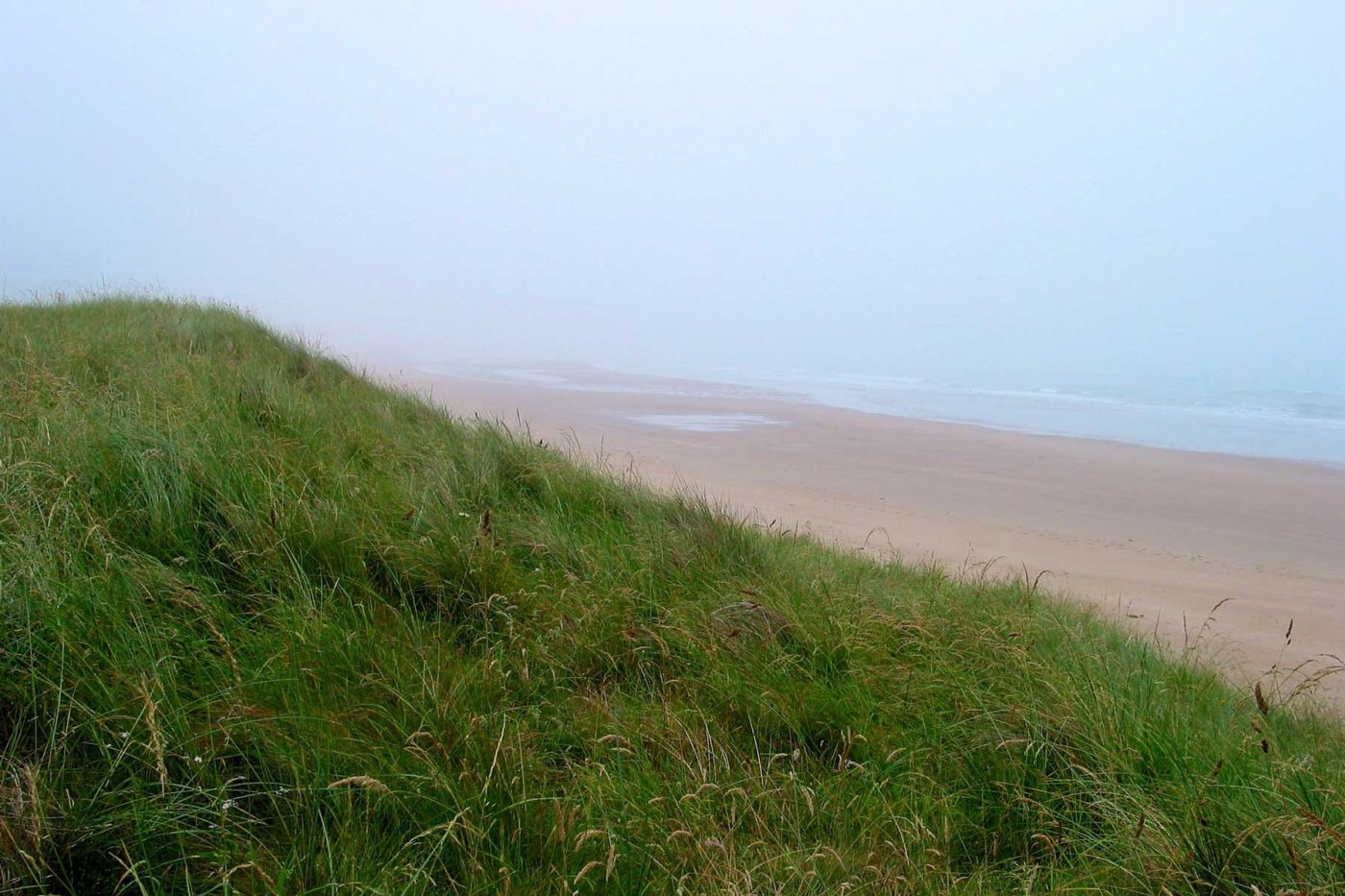 Die Löcher 1 und 2 verlaufen unterhalb der riesigen Dünen. Nach dem Anstieg zum 3. Tee auf der Spitze der Düne weht eine heftige Brise vom Meer her. Willkommen in Schottland und Links-Golf...