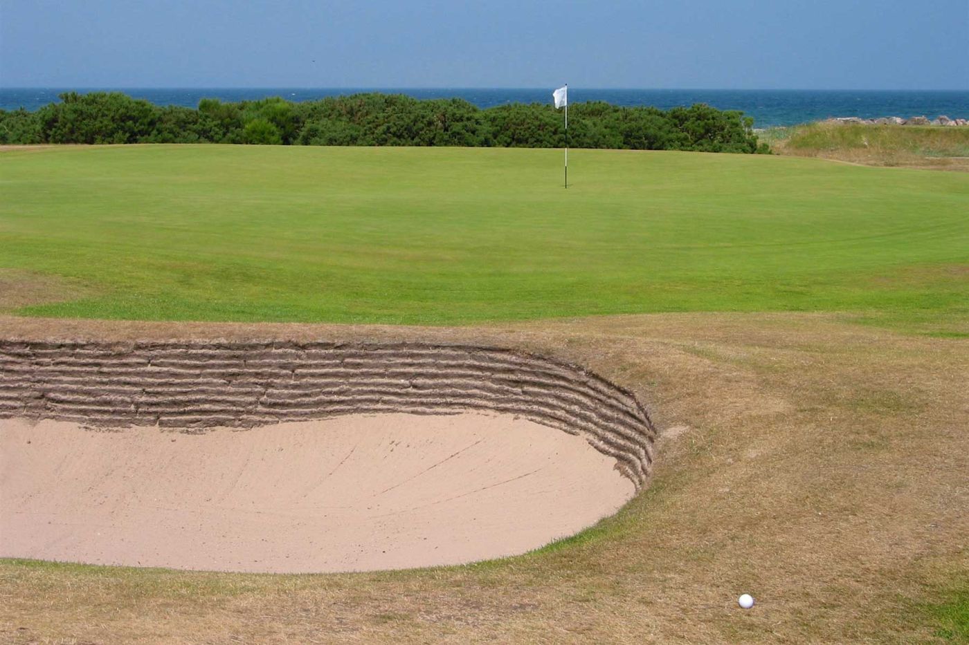 Viele tolle Löcher am Meer, riesige Bunker vor dem Grün, und Wind, Wind, Wind...