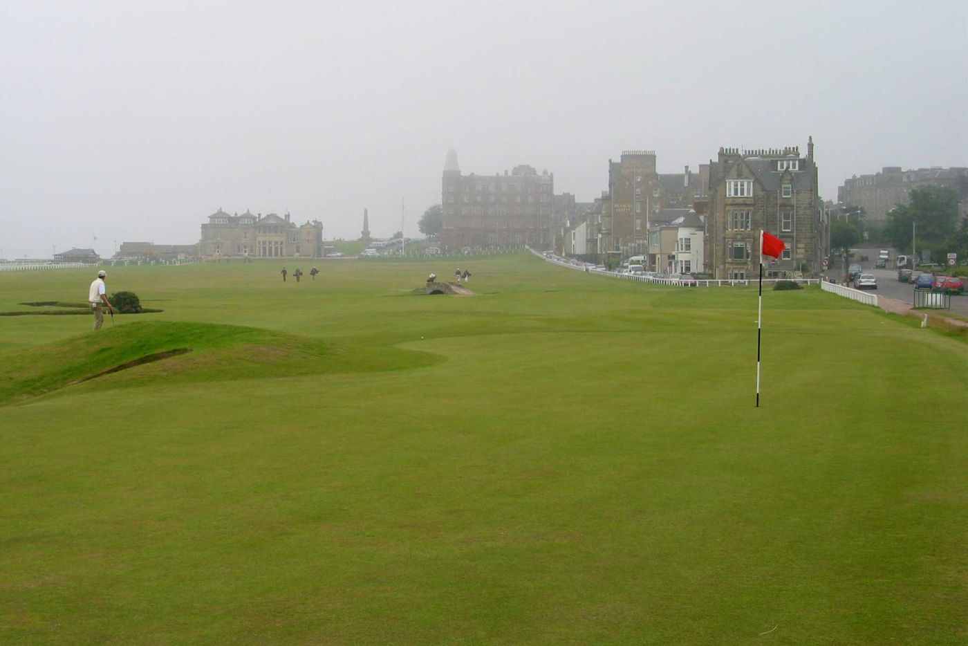 Wir machen einen Bummel durch die Stadt, rund um das bekannte Clubhaus des 'Royal & Ancient Golf Club of St. Andrews' und entlang des 18. Lochs (Straße 'The Links') und um das 18. Grün.