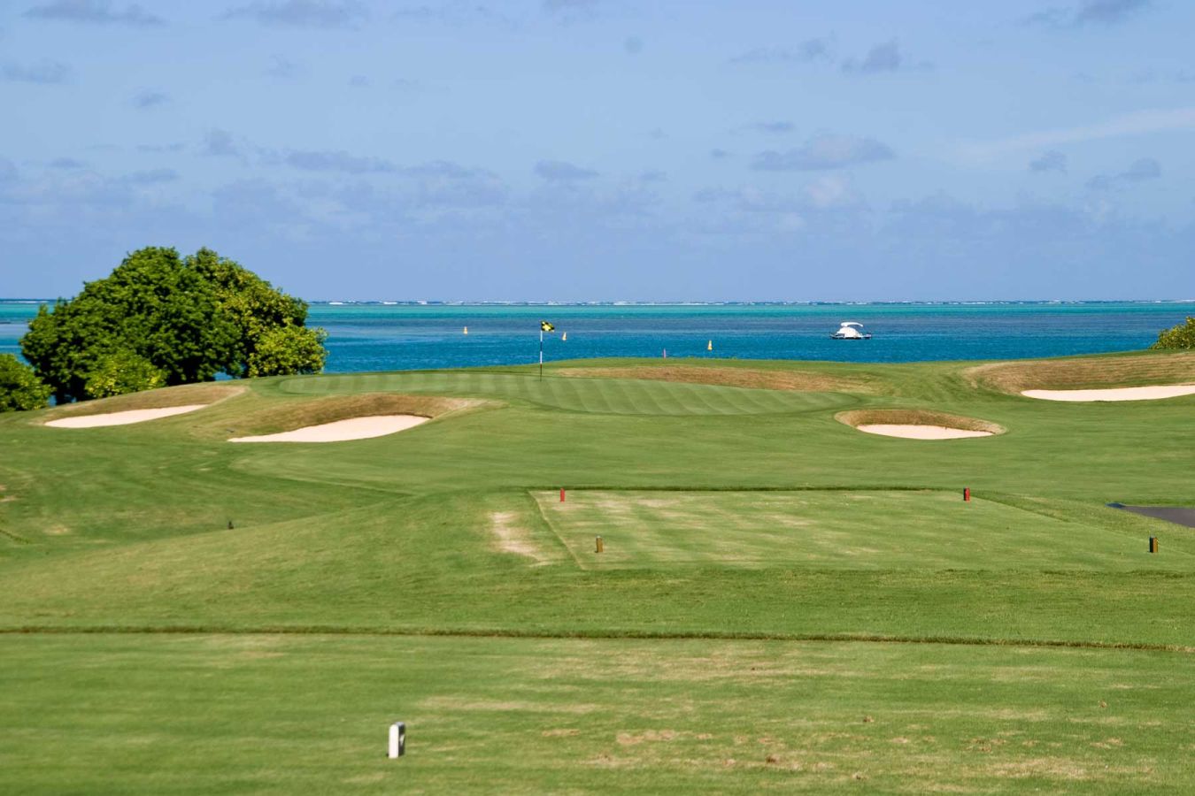 Mit dem Auto geht es wieder quer über die Insel an die Ostküste, denn ich spiele den zum Four Seasons gehörenden Anahita Golf Course in der Nähe von Beau Champ…