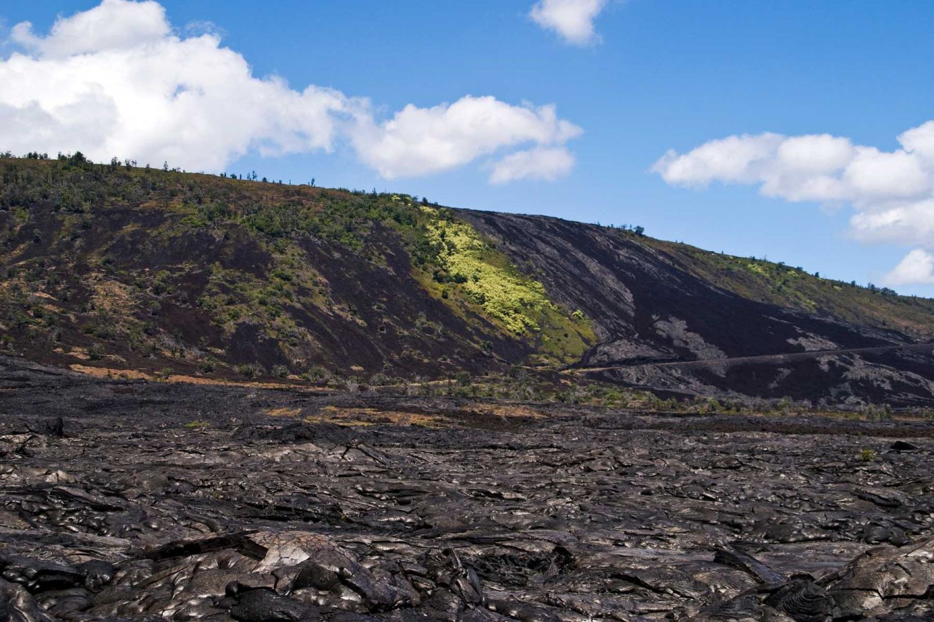 Ich fahre durch bereits versteinerte Lava-Ströme bis zum neu geschaffenen Land auf Meeresebene. Draußen im Meer, einige Meilen weiter südlich „brodelt“ bereits der nächste Vulkan (Loi'hi) und so entsteht in einigen tausend Jahren die nächste Insel....