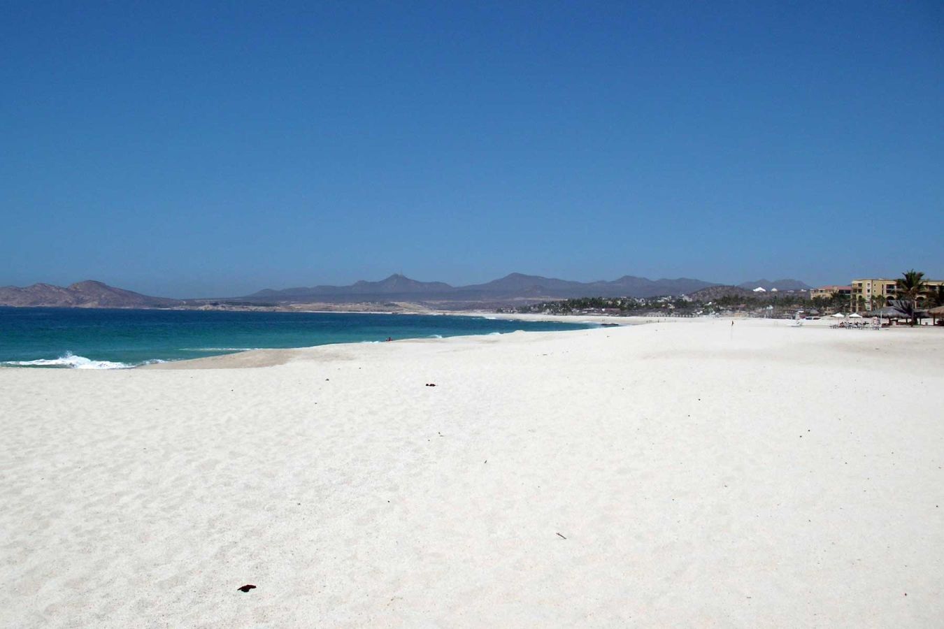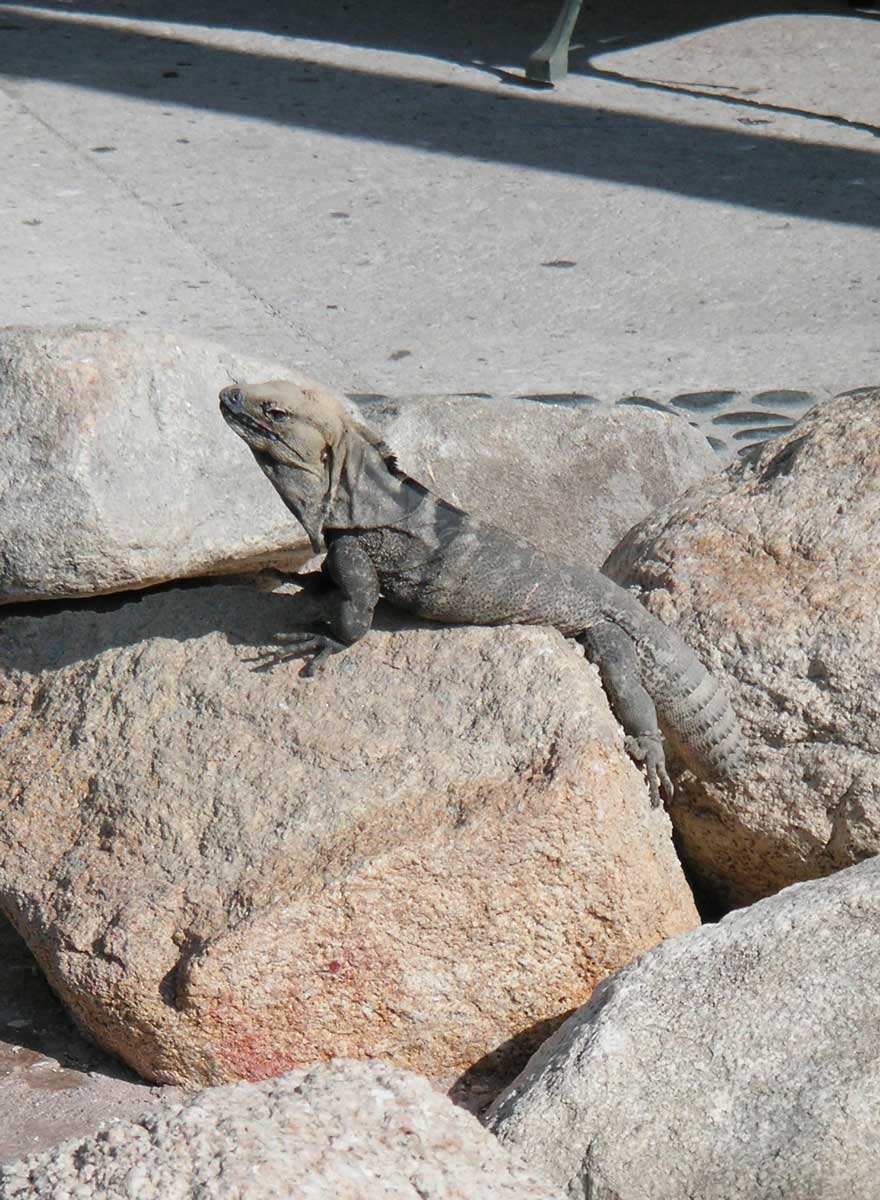 Frühstück, danach geht's noch einmal zum Abschied an den Strand. Um 11.00 Uhr gehen wir ins Zimmer packen, um 12.00 Uhr erfolgt der Checkout, Essen am Swimmingpool (Nachos, Avocados) und mit dem Taxi zum Flughafen von San José del Cabo. Die Schnellstraße zum Flughafen führt durch eine steppige Landschaft mit vielen großen Kakteen...