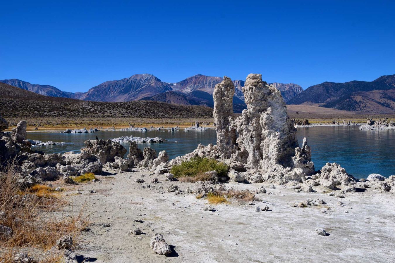 Auf der anderen Seite geht es steil bergab bis Lee Vining und dem Mono Lake, der für seine Tuff-Gesteinsformationen bekannt ist. Der beeindruckende See liegt auf 6.378 ft. (1.944 m). Der See war schon im Jahr 1975 für das Pink Floyd Album „Wish You Were Here“ ein Motiv für das Album-Cover…