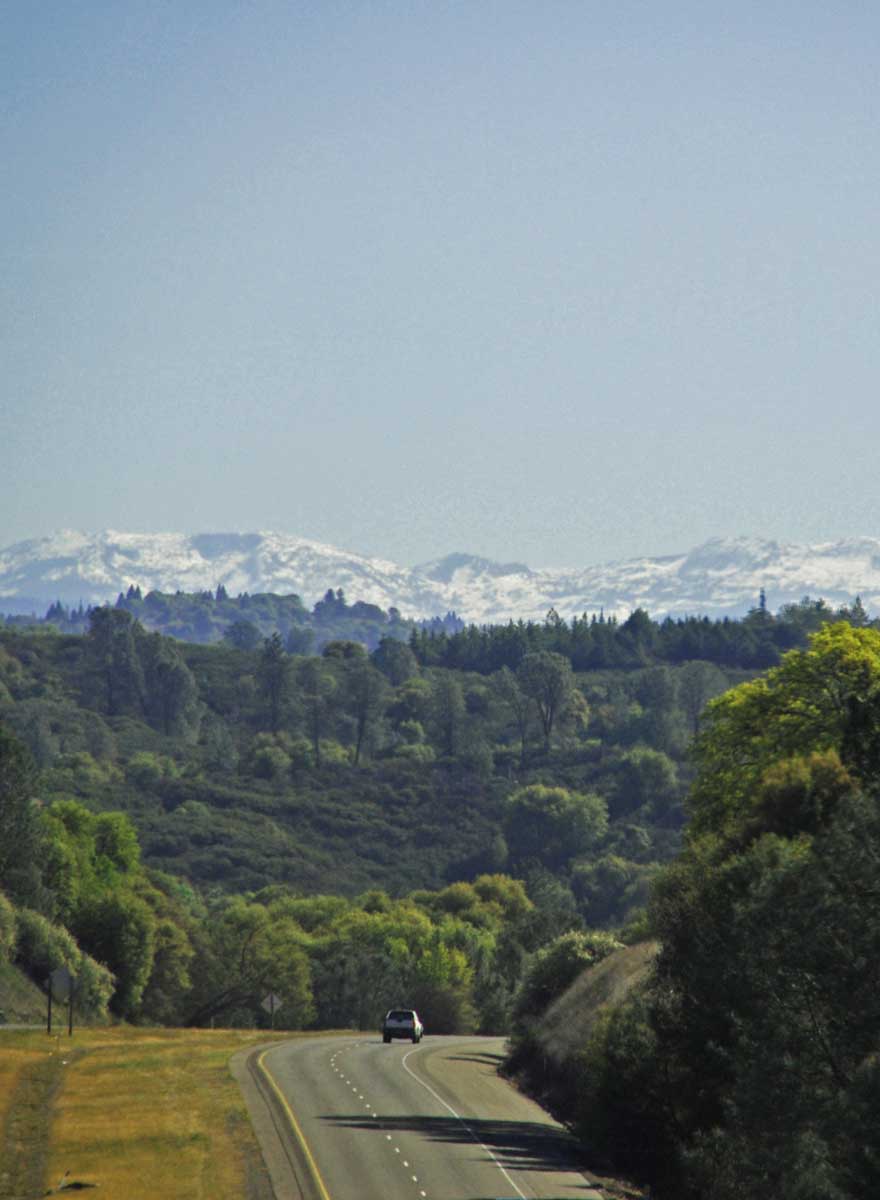 Nach der Besichtigung fahren wir auf dem Highway 50 Richtung Placerville. Ein wenig später wird der Highway zur Bundesstraße. Wir überqueren den Echo Summit auf 7.382 ft. (2.200 m) Höhe und es hat nur mehr 49°F/11°C.