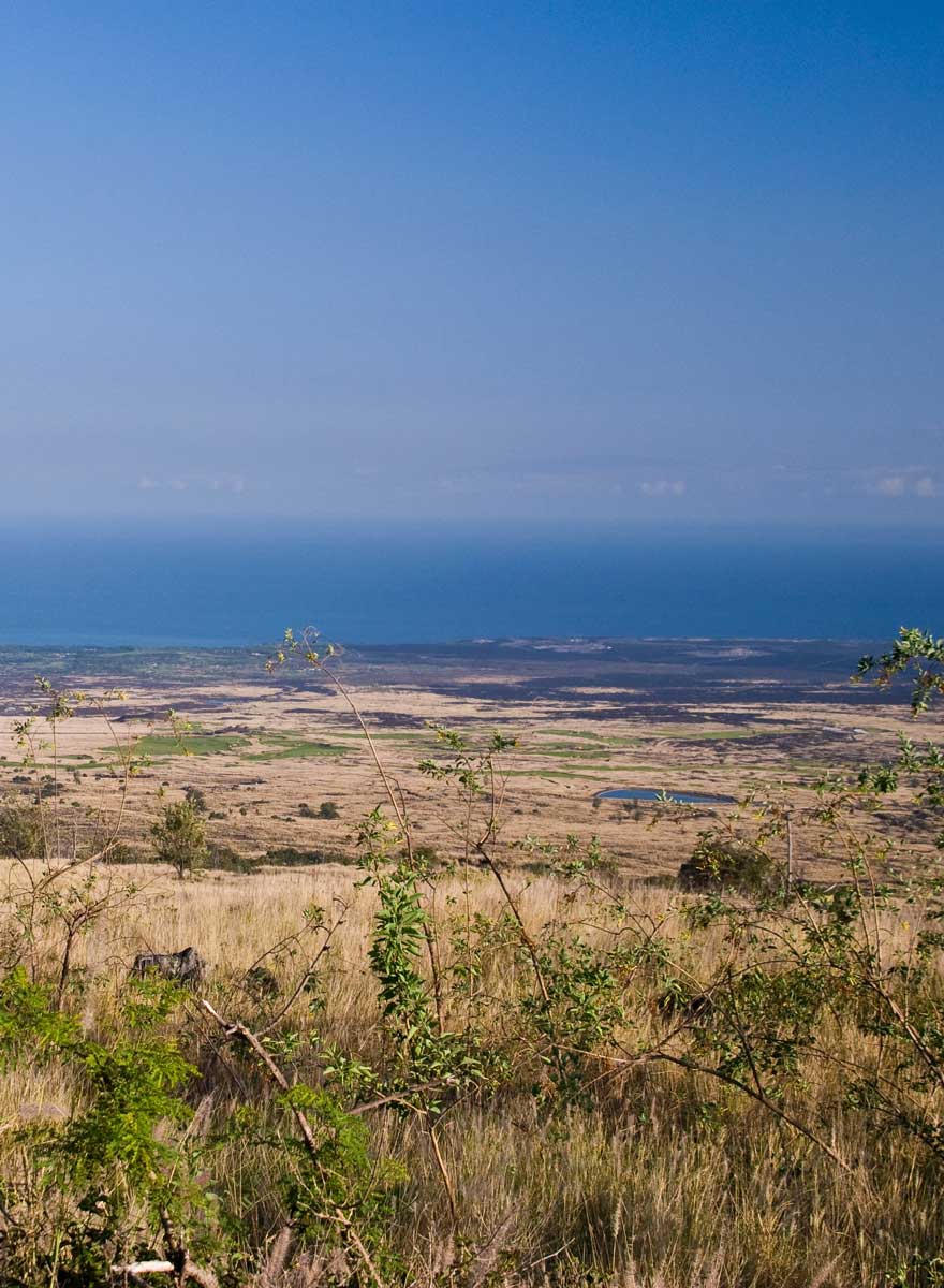 Kona: wolkenlos, 26°C (78°F); Saddle Road: wolkenlos, Regen, 15°C (58°F); Kohala: sonnig, 31°C (88°F)
